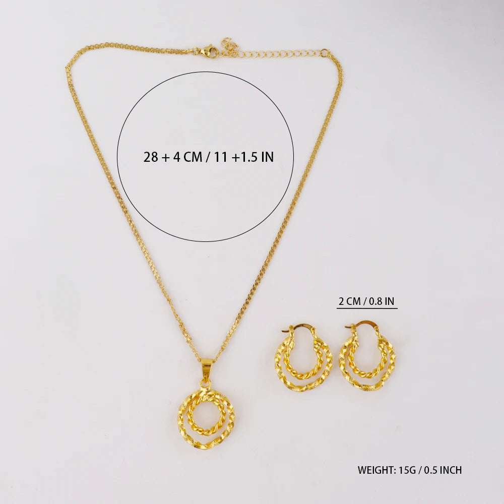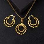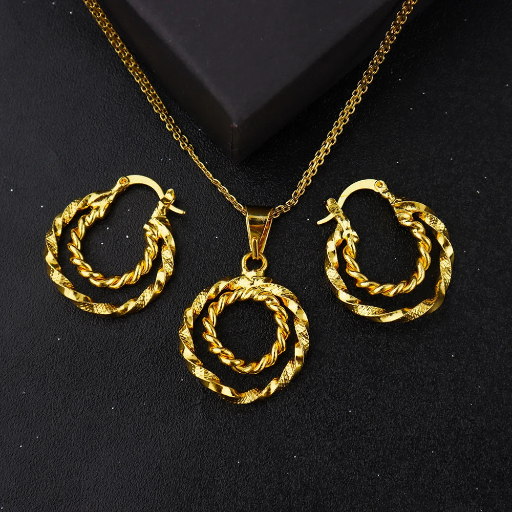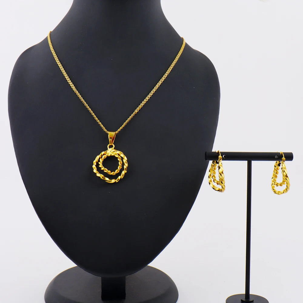 Gold Plated Twisted Round Necklaces Earrings Jewelry Set Simple Pendant Anniversary Party Dubai Bridal Wedding Jewelry Gifts