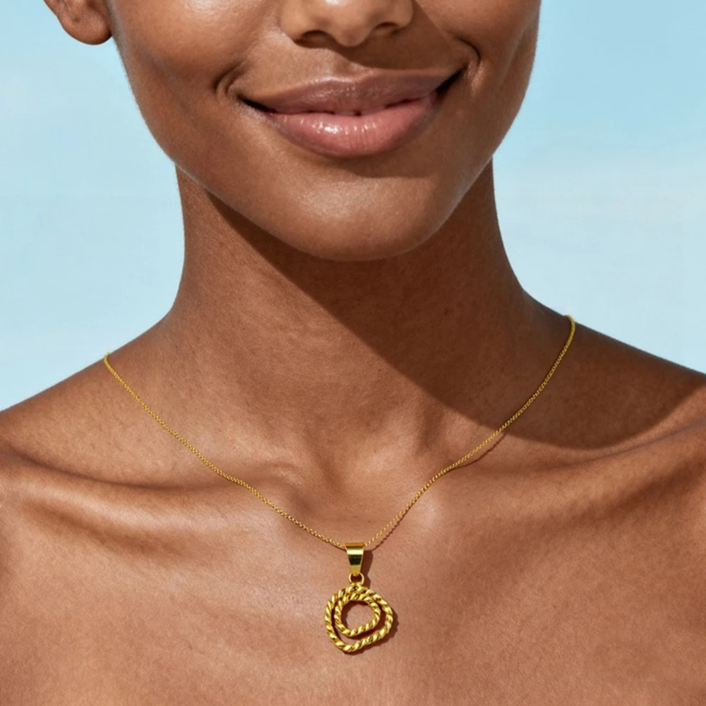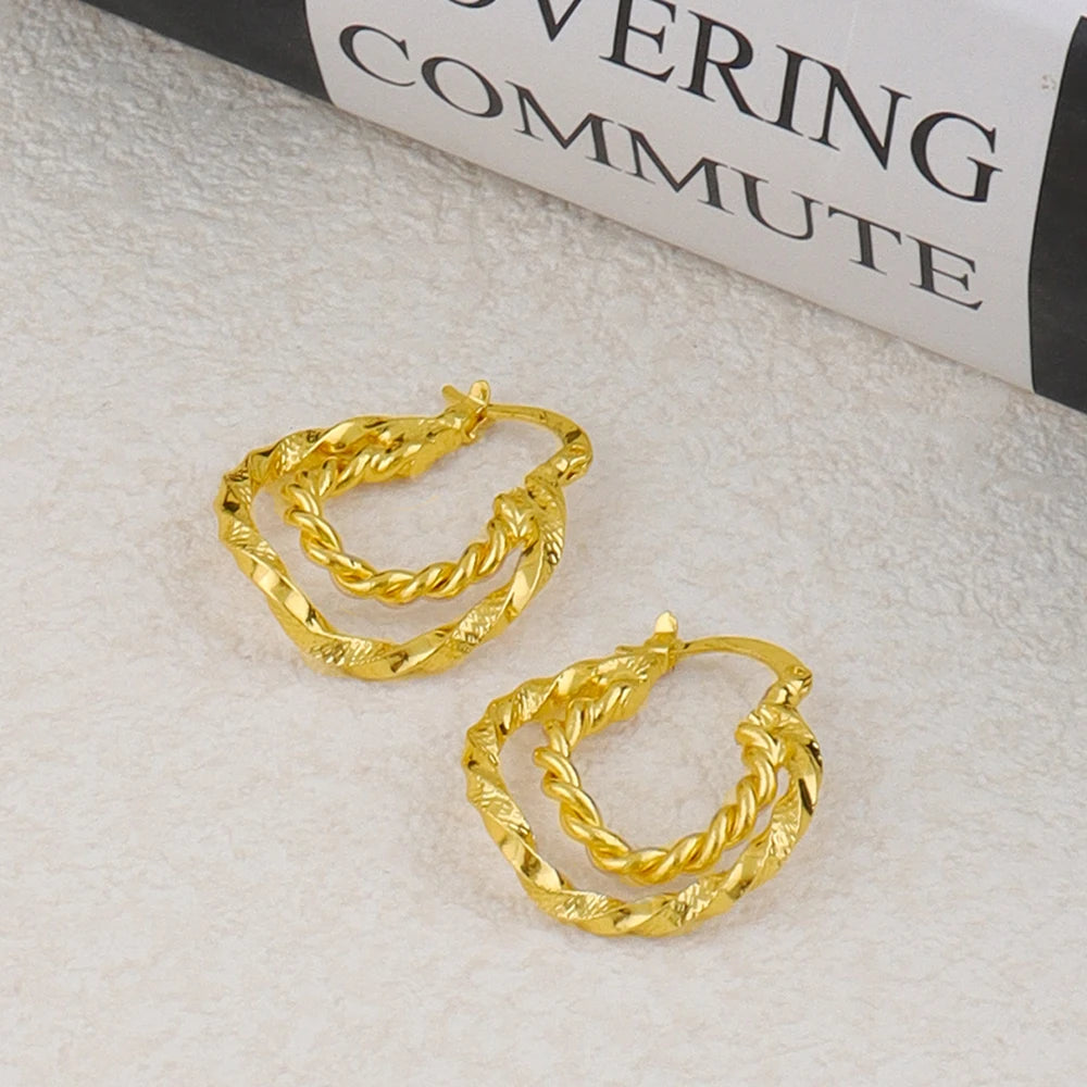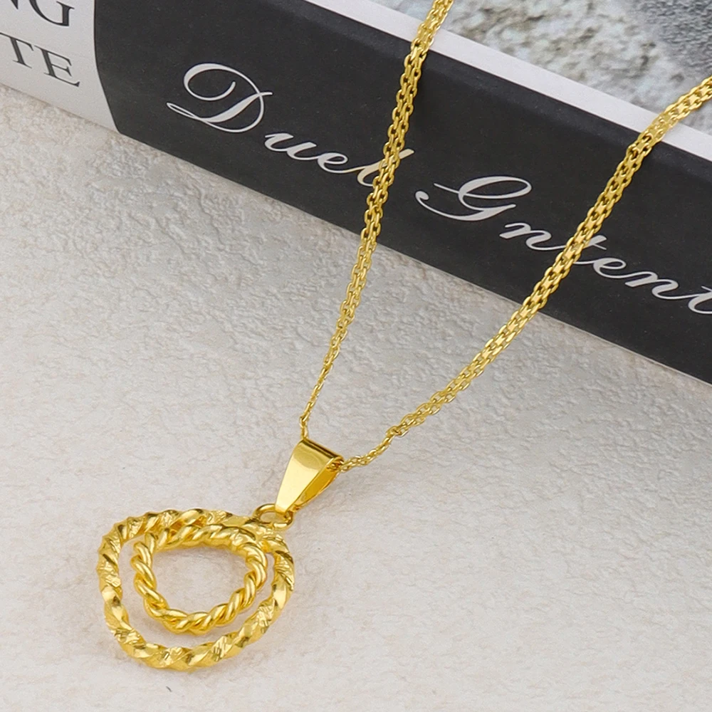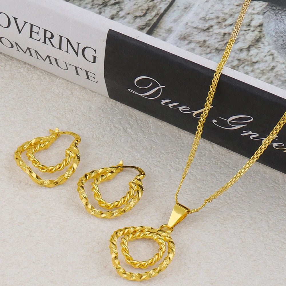Gold Plated Twisted Round Necklaces Earrings Jewelry Set Simple Pendant Anniversary Party Dubai Bridal Wedding Jewelry Gifts