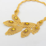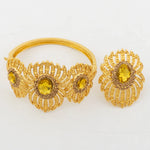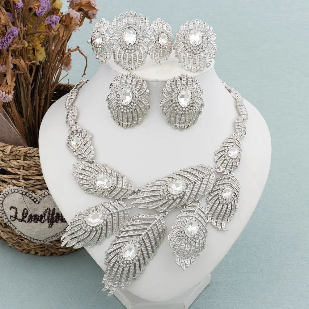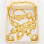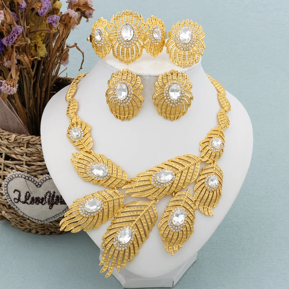 Italy Gold Color Jewelry Set Dubai Women Angel Feather Zircon Necklace Earrings Exaggerate Design Pendant Large Jewelry Bangle