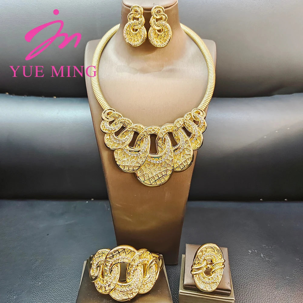 Woman Jewelry Set Luxury Gold Color Zircon Necklace Earrings Wedding Party Jewellery Dubai Charm Bracelet Ring Anniversary Gifts