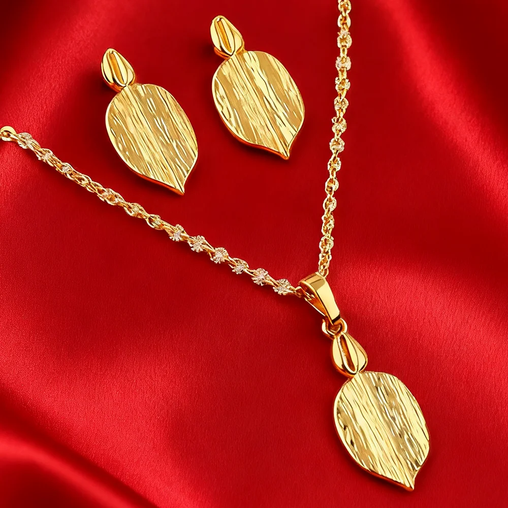 Women Stainless Steel Leaves Clavicle Choker Jewelry 24k gold plated jewelry set for women party accessories gift