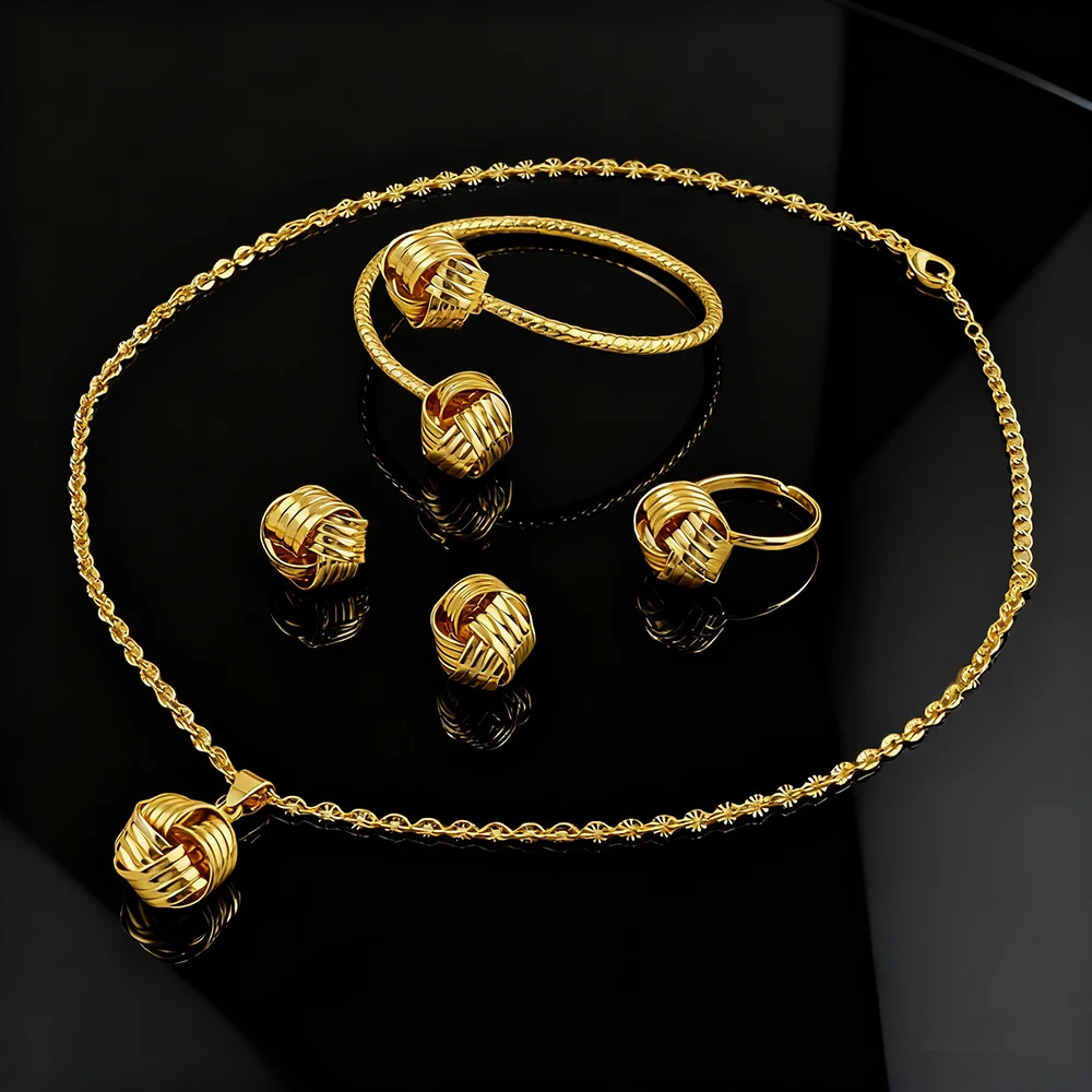 Material: Metal,24k Gold Plated Earrings Bracelet Ring and Necklace