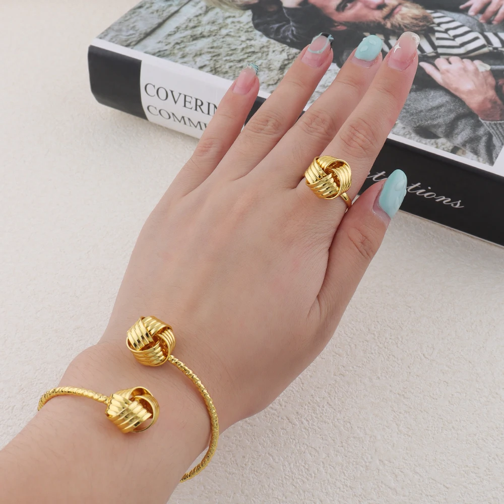 New Fashion Metal Jewelry Three-dimensional Ring Earring Necklace Bangle 4Pcs Jewelry Set Creative Design Sense Set Jewelry Gift