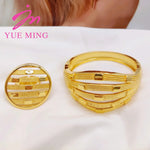 Dubai Gold Color Hollow Bangles with Ring For Women Luxury Charm Bracelet Weddings Party Elegant Jewelry Anniversary Gifts