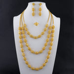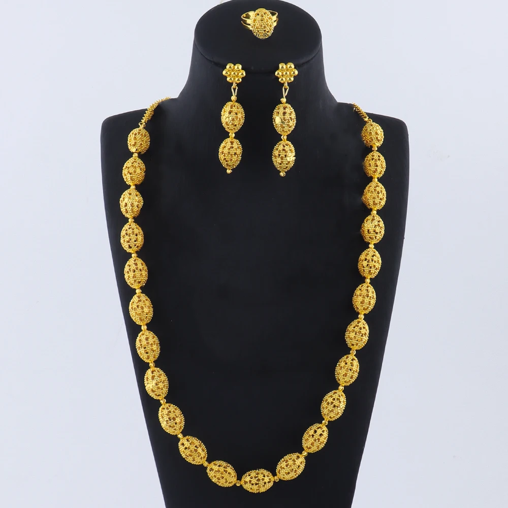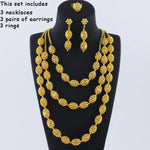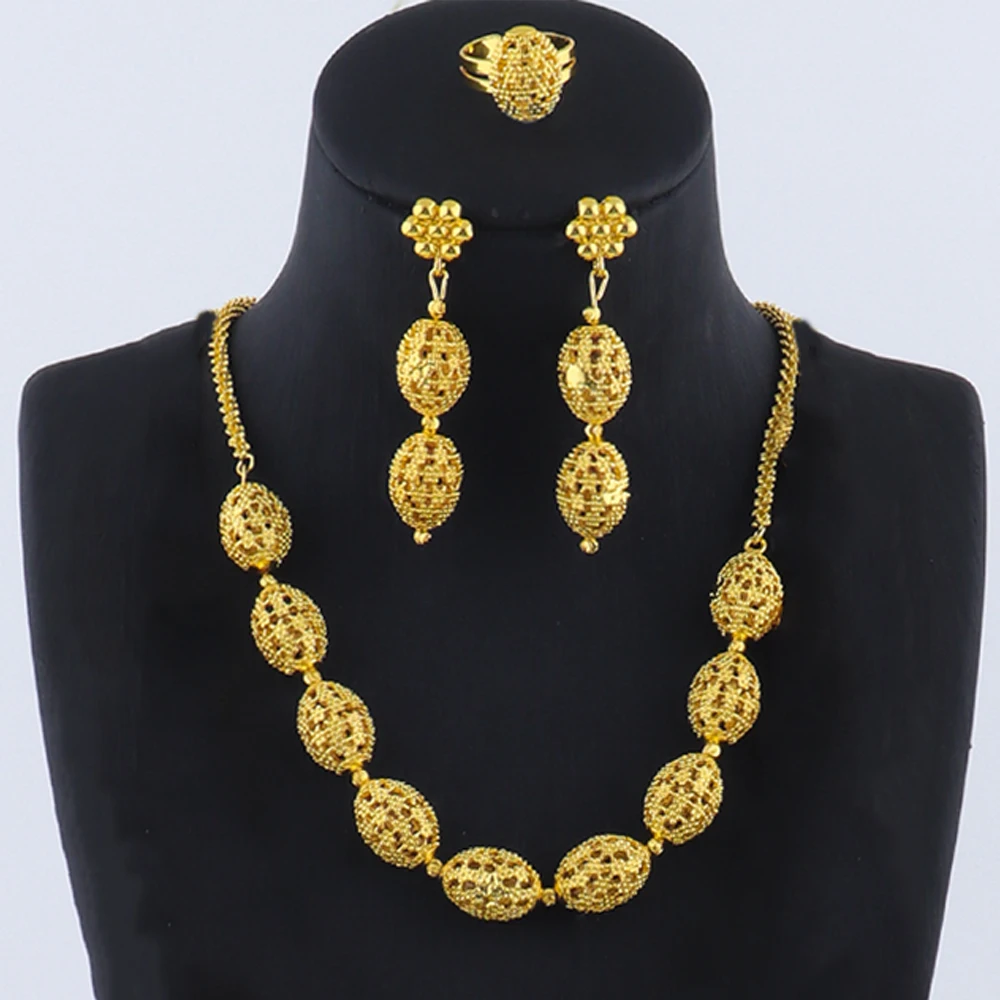 Dubai Gold Plated Jewelry Set for Woman Hollow Out Oval Necklace Earrings Ring Indian Bride Multi Layering Wedding Set Wholesale