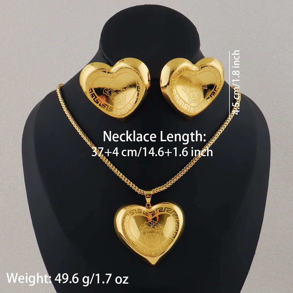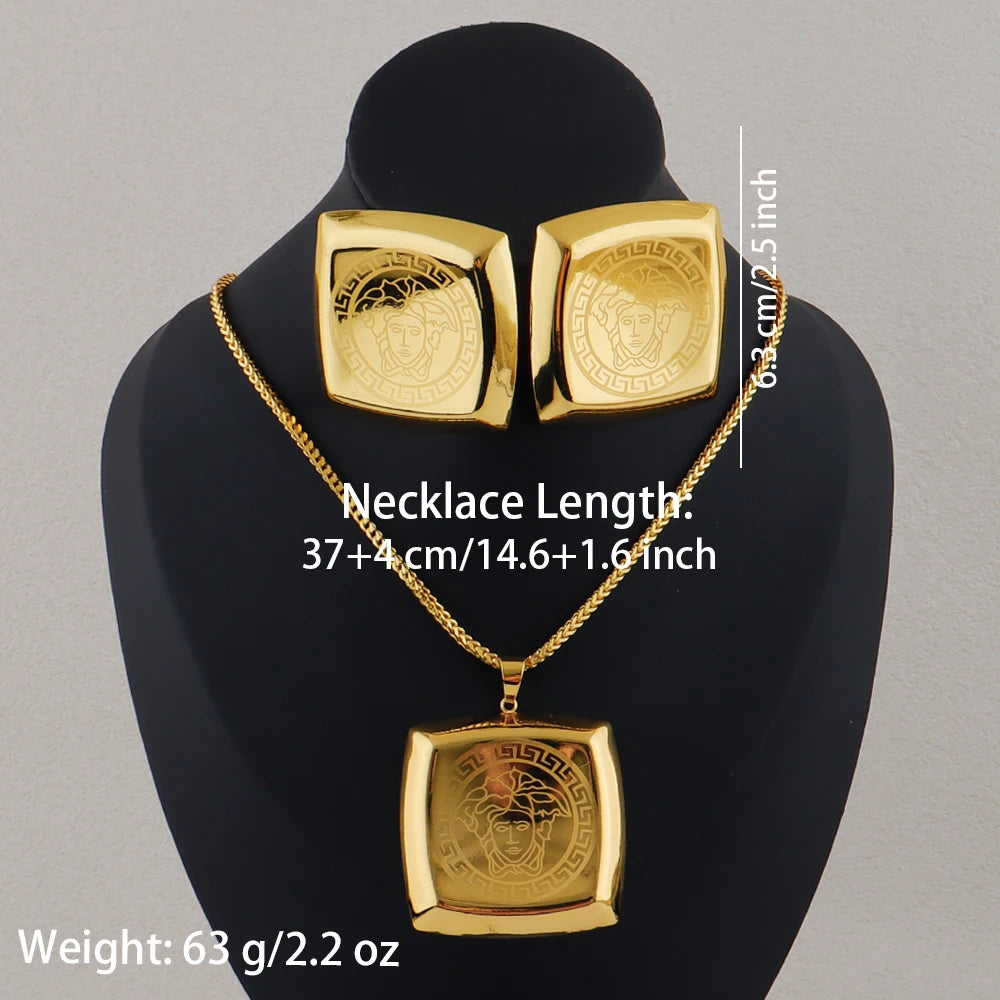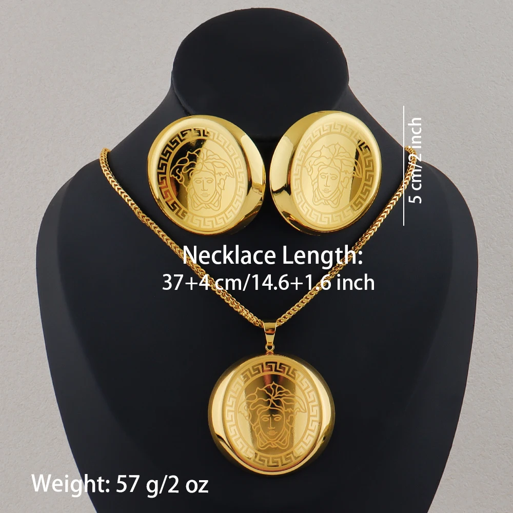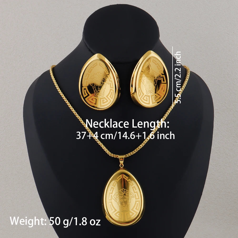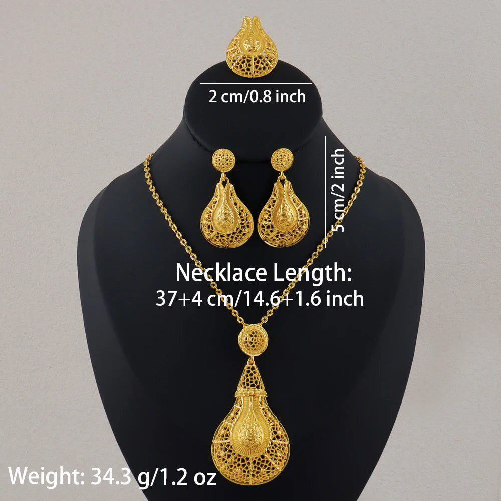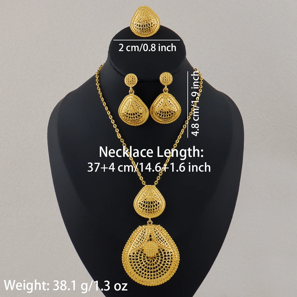 Dubai Fashion 24k gold Noble Pendant Necklace Women Wedding Pendant Chain Earrings 2 Piece Set Jewelry Party Christmas Gift