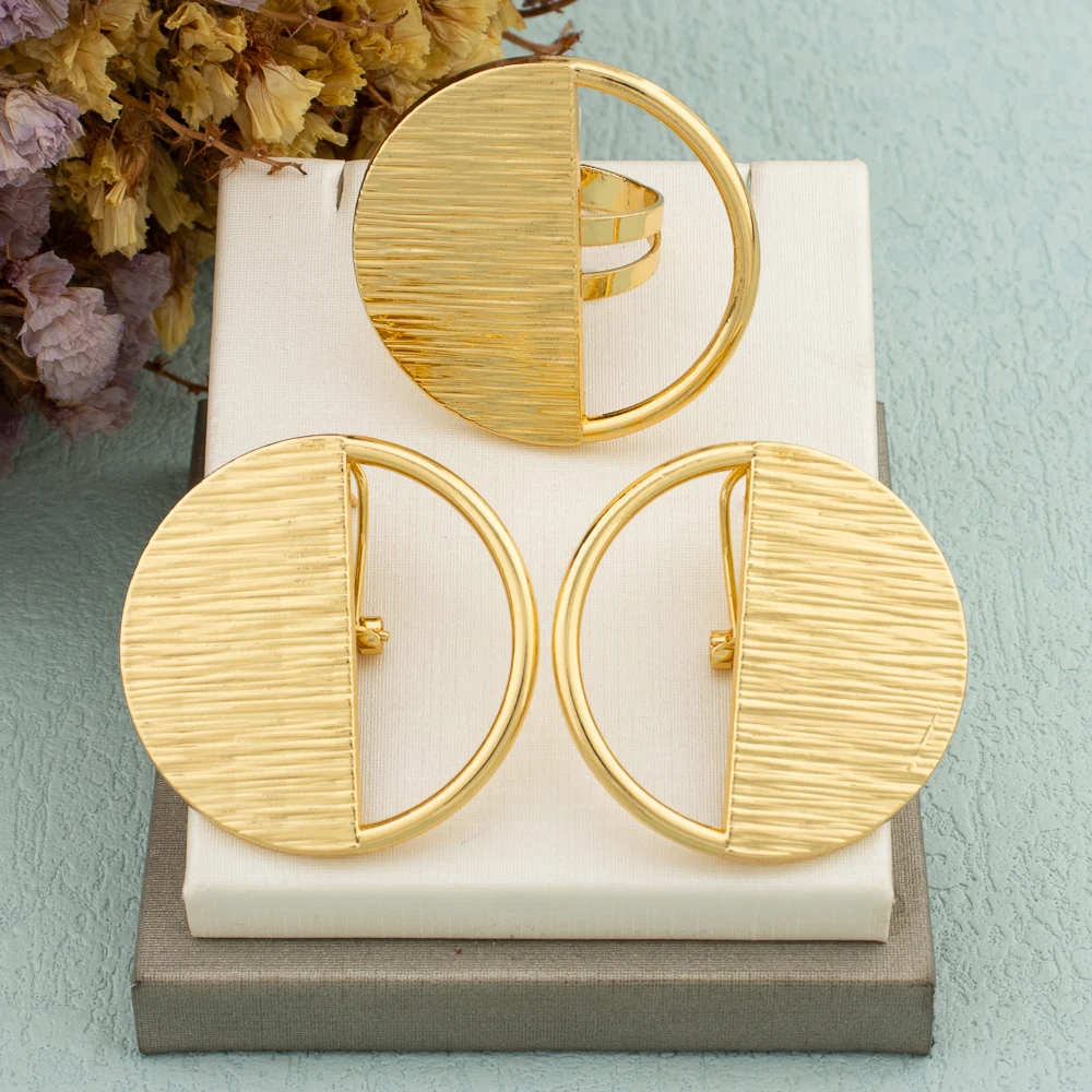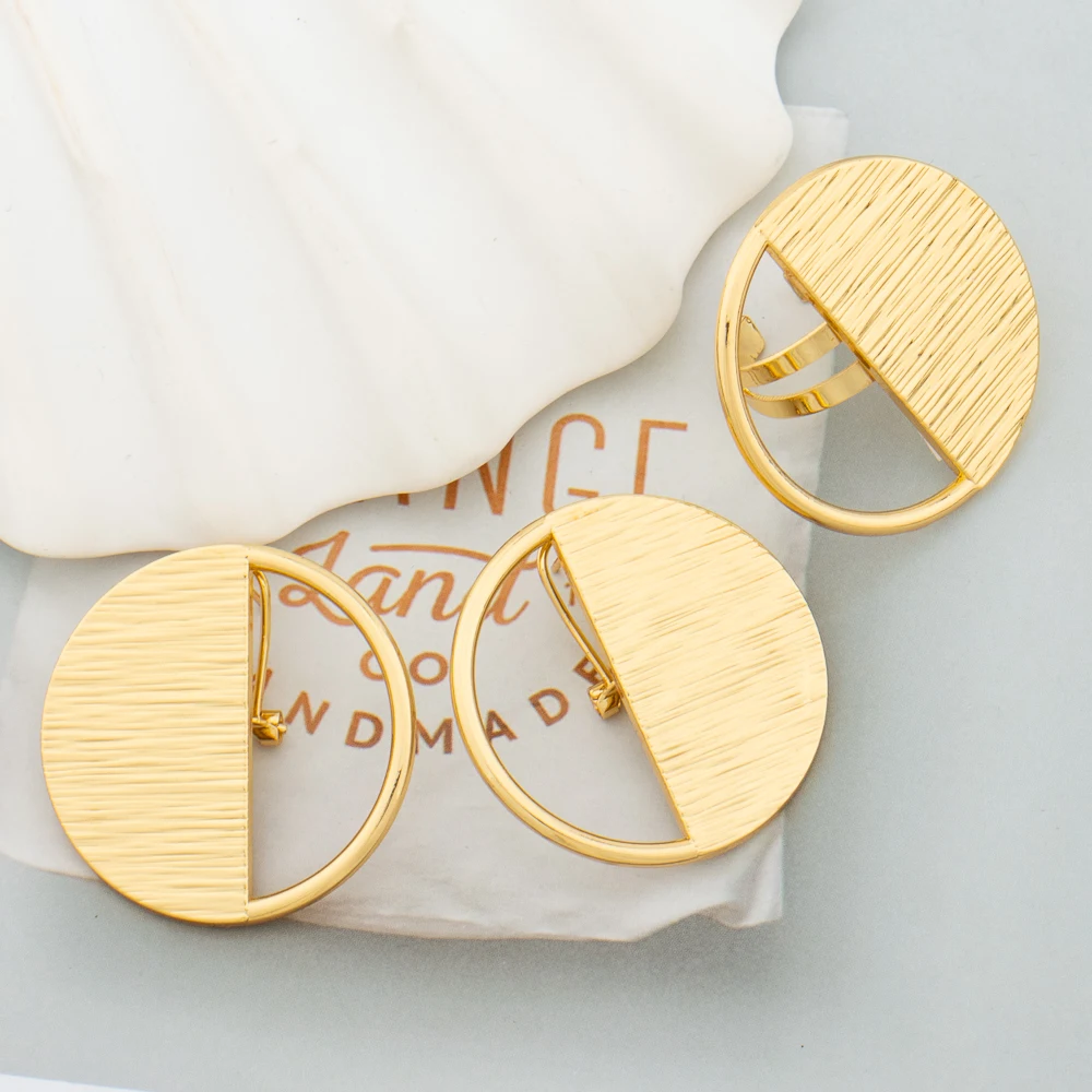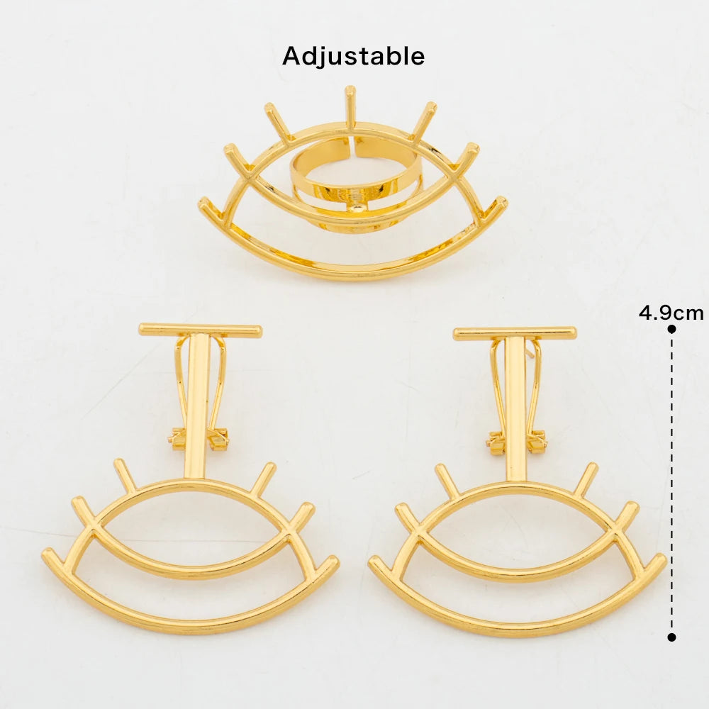 African Golden Jewelry Set for Women 18K Gold Plated Earrings Rings Eye Design Wedding Bride Arab 2Pcs Set Jewelry Accessories