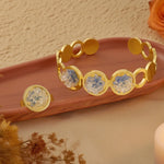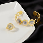 Delicate Colorful Zircon Stainless Steel Gold Color Adjustable Bracelet Fashion Open Ring High Quality Jewelry Gift For Wedding