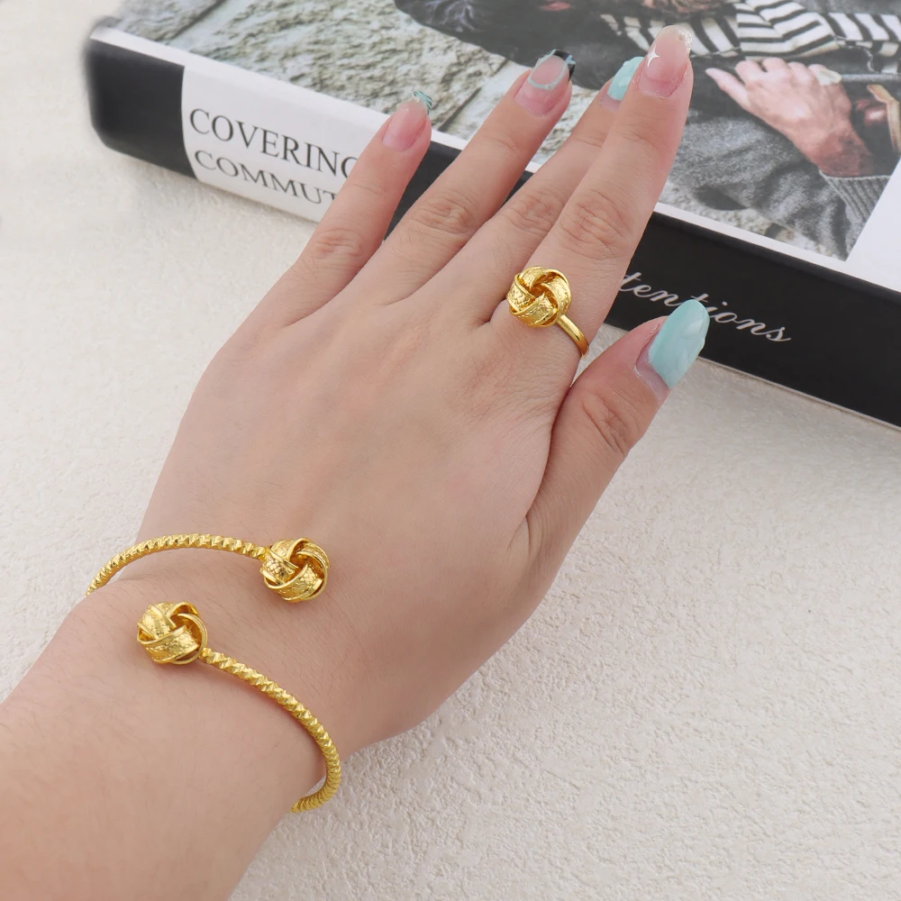 Gold Color Alloy Metal Twist Lucky Knot Earrings Necklace Bracelet Ring Set for Girls Trendy Geometric Vintage Jewelry