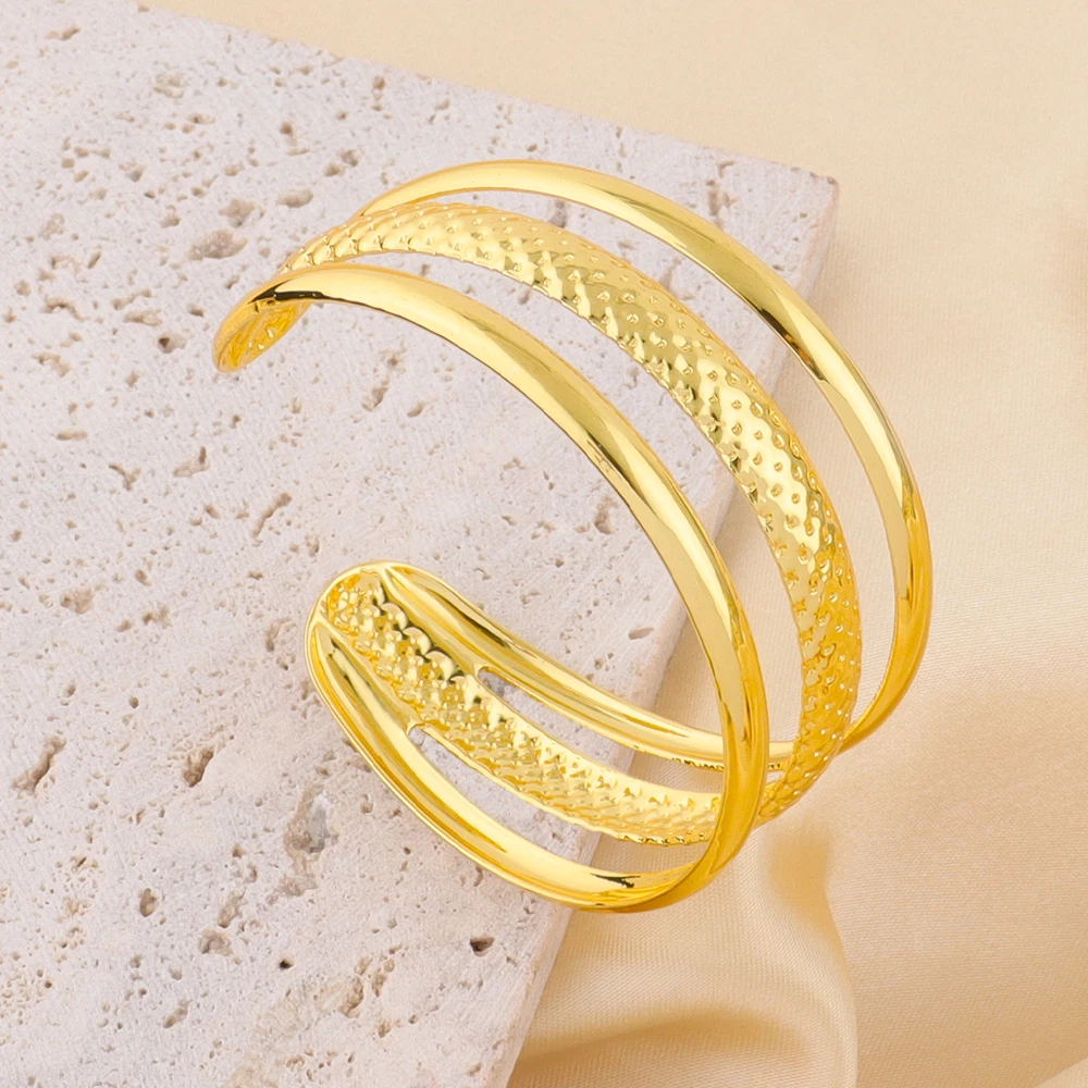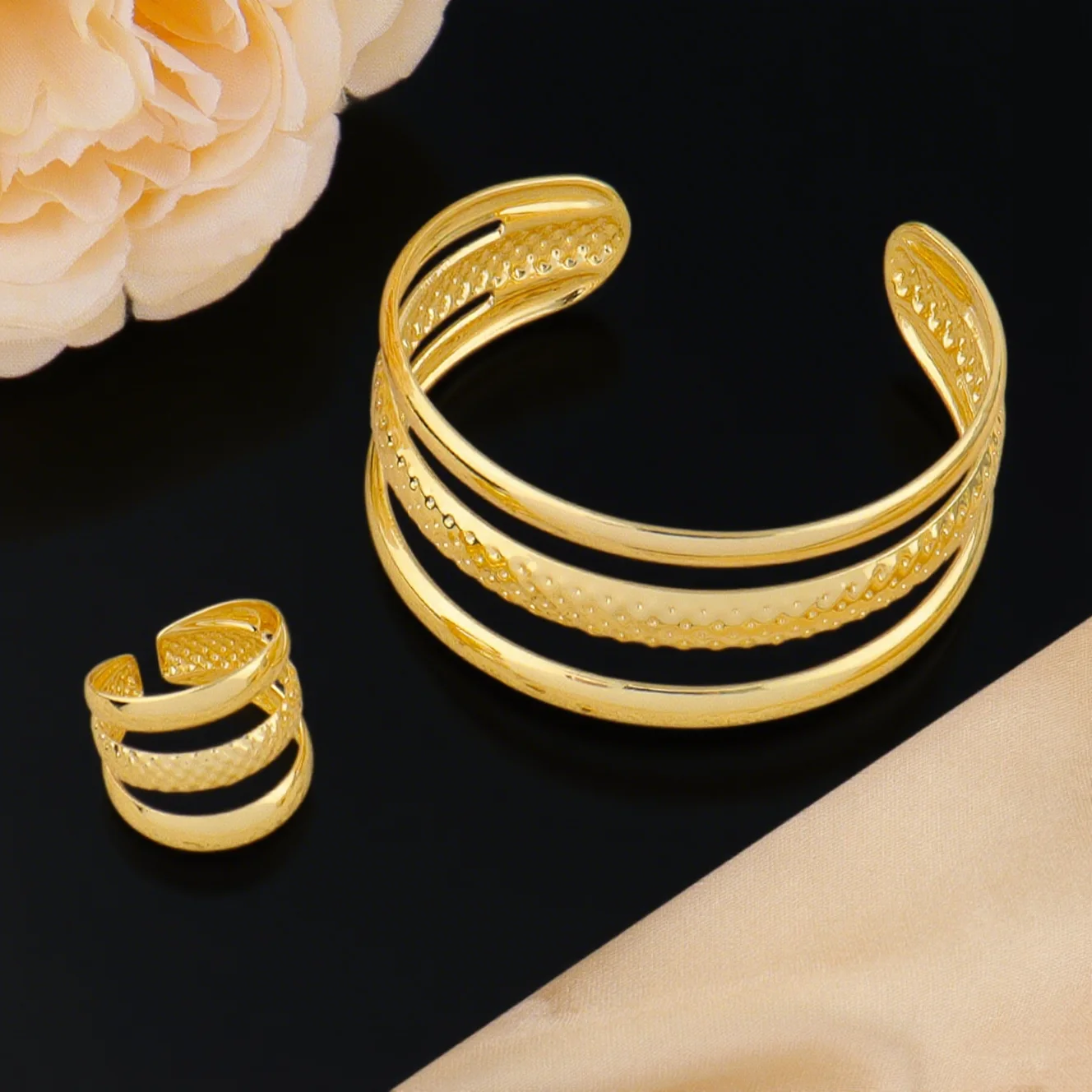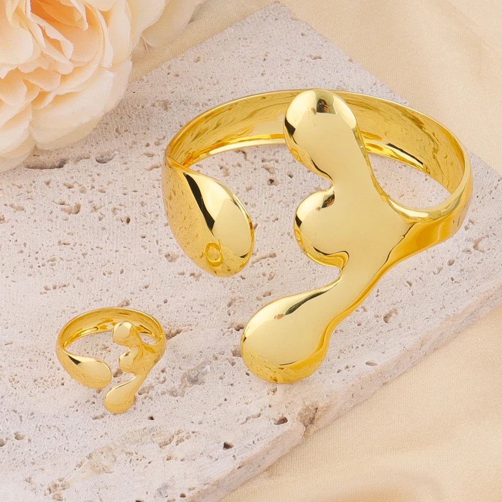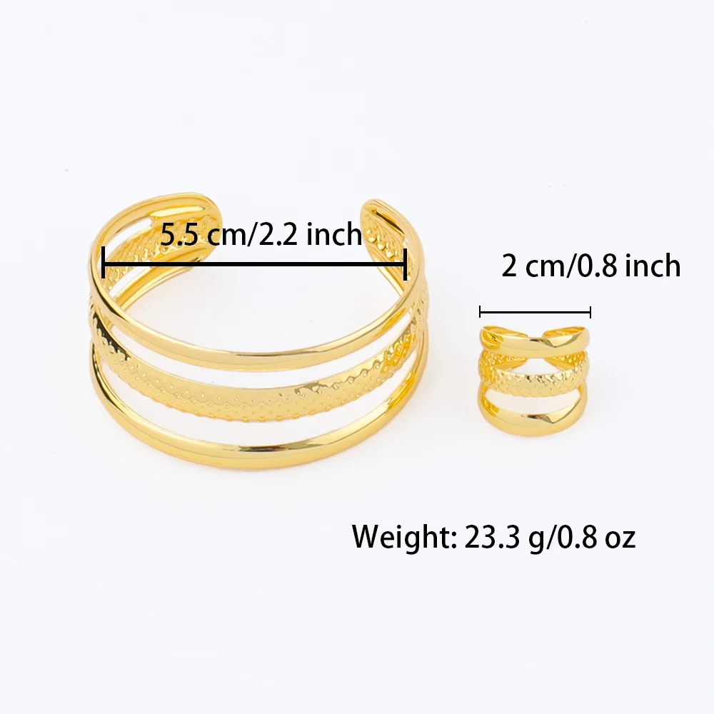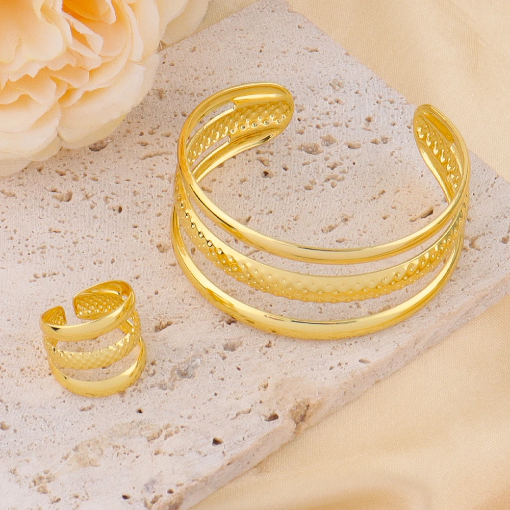 Saudi Arabia African 18K Gold Irregular Fashion Jewelry Set Women Bracelet Ring Dubai Bride Nigeria Wedding Party Accessories