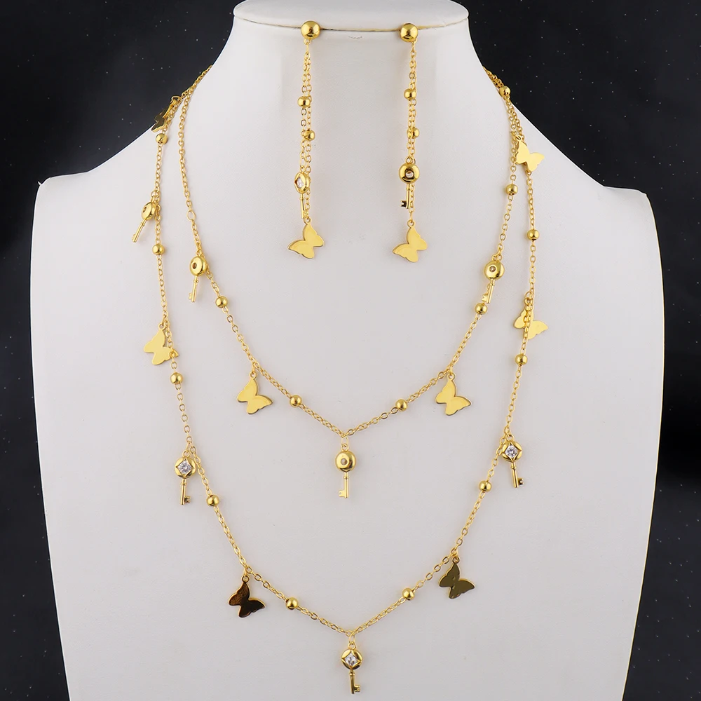 Gold Plated Necklace Zircon Shine Earrings Jewelry Set for Women Girl Bride Elegant Jewelry Gift for Christmas Party Wedding