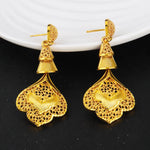 Luxury Shining Gold Plated Necklace Earrings Ring Women Jewelry Set Flower Hollow Shape Jewelries Gift for Party Wedding